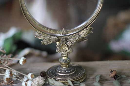 Vintage Floral Standing Vanity Mirror 2 Sided Magnifier