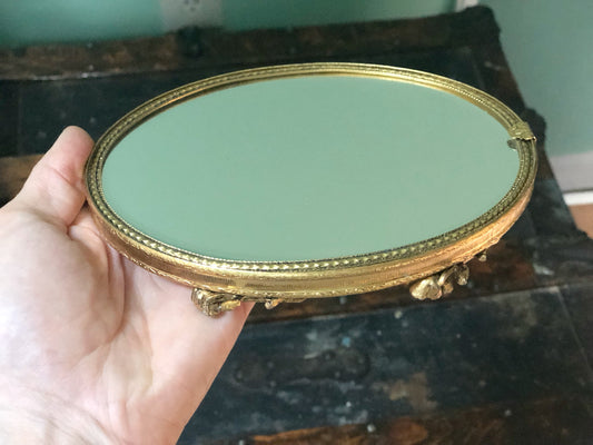 Vintage Floral Miniature Vanity Mirror Tray