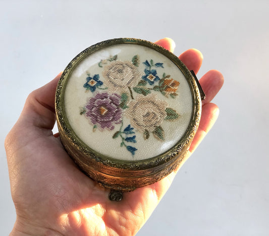 Sold outVintage Floral Needlepoint Trinket