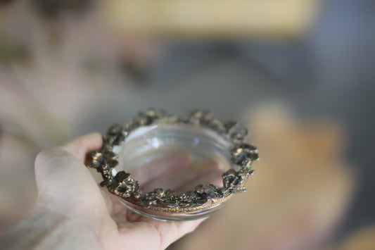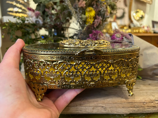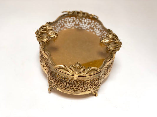 Vintage Floral Dogwood Filigree on Glass Jewelry Casket