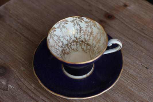 Vintage Eynsley England Navy Gold Leaves Tea Cup Set