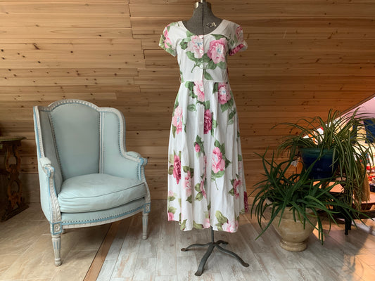 Vintage Floral Green & White Leaves Carol Anderson Dress