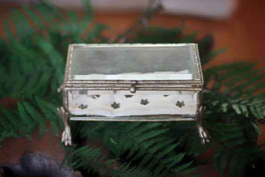 Vintage Claw Feet Beveled Glass Jewelry Box
