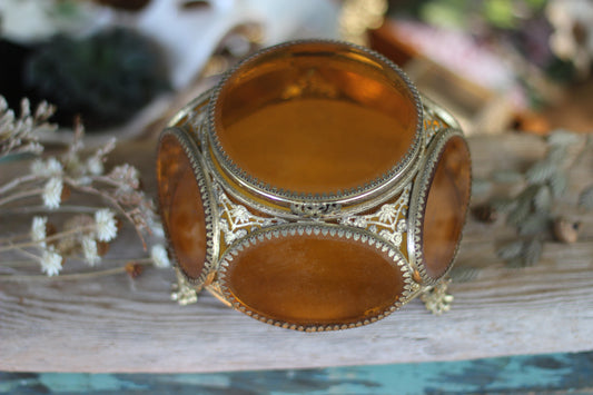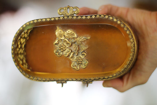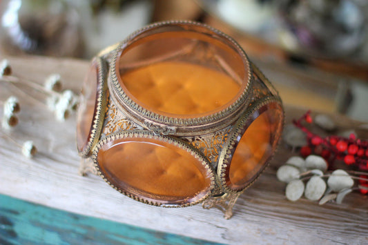 Vintage Amber Tinted French Victorian Rare Jewelry Box - Reserved