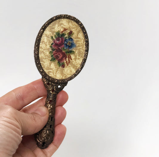Floral Petite Embroidered Floral Hand Mirror