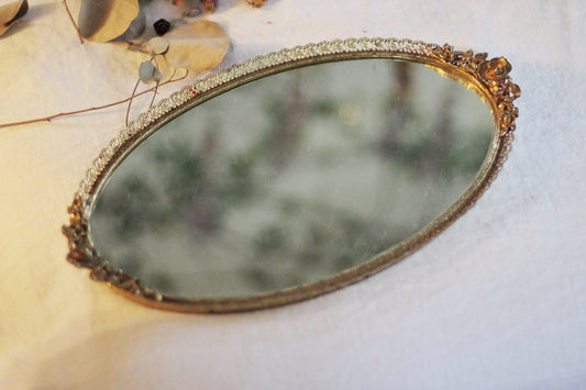 Blooming Roses Antique Mirror Tray