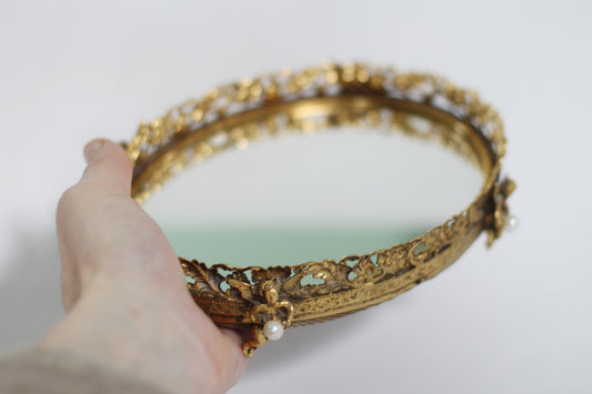Antique Small Angels / Cherubs Vanity Mirror Tray