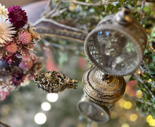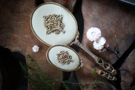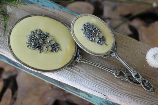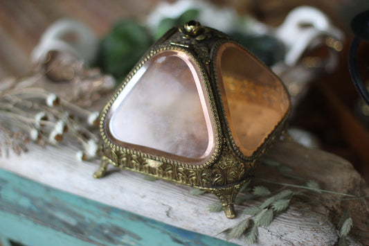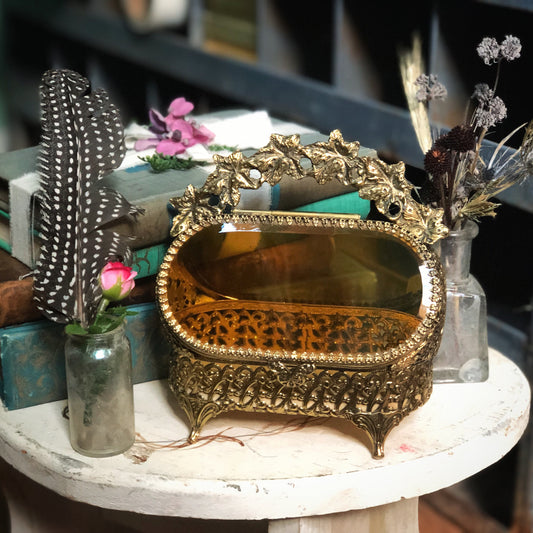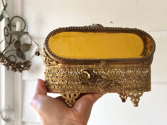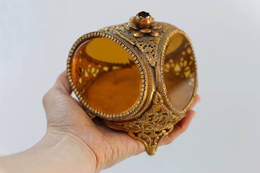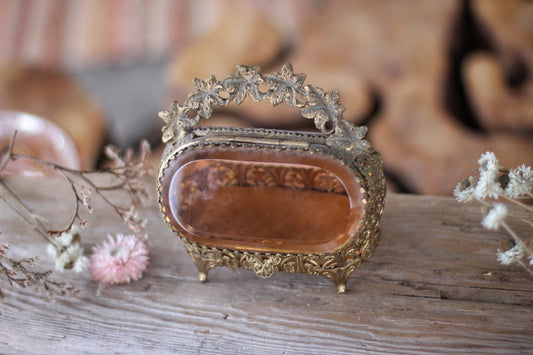 Antique Rare Floral French Victorian Amber Glass Jewelry Box