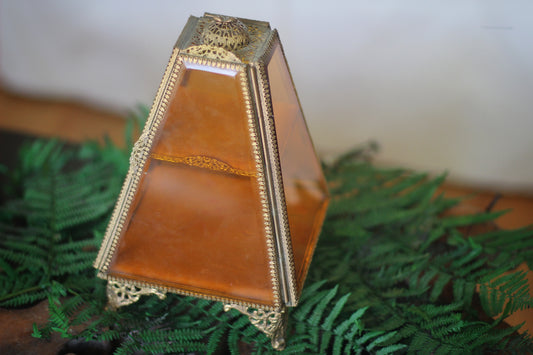 Antique Pyramid Amber Tinted Glass Jewelry Box