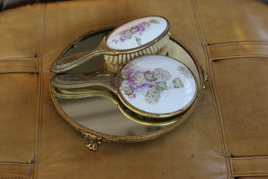 Antique Porcelain Hydrangeas Floral Vanity Set