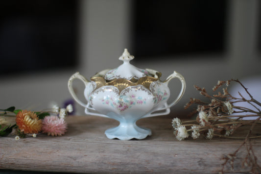 Antique R S Prussia Floral Porcelain Sugar Bowl