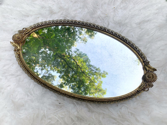 Antique Matson Sunflowers Mirror Tray