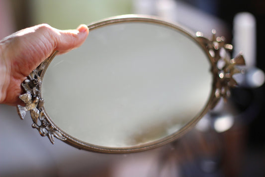 Sold outAntique Miniature Birds Mirror Tray