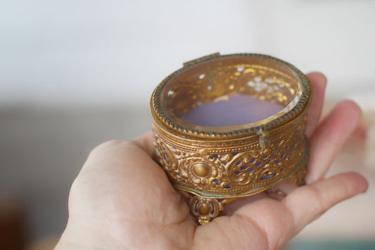 Antique Miniature Bronze Purple Paddjng Jewelry Box