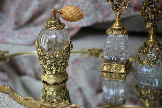 Antique Matson Birds Dogwood Flowers Perfume Bottle