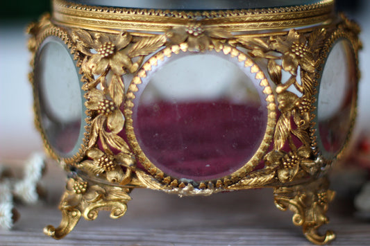 Antique Matson Dogwood Red Velvet Jewelry Box