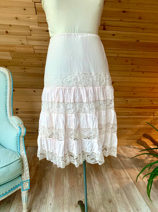 Sold outVintage Light Pink Lace Tiered Skirt