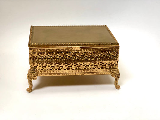 Vintage Lion Feet Gold Filigree Jewelry Box