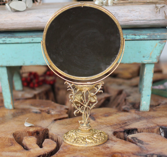 Vintage Matson Floral Vanity Pedestal Mirror Double Sided Magnifier