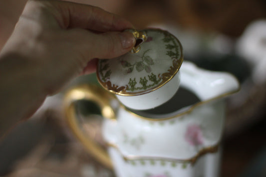 Vintage Limoges Floral Leaves Porcelain Tea Pot