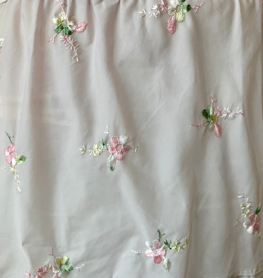Vintage Light Pink Embroidered Flowers Tiered Skirt