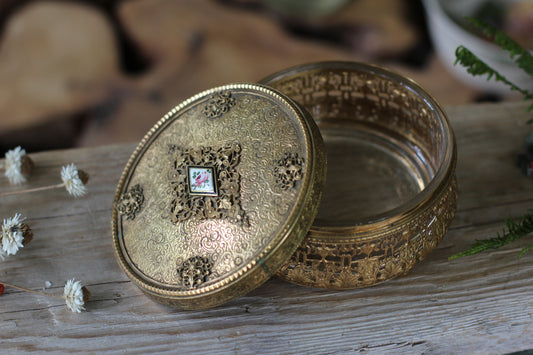 Vintage Guilloche Filigree Floral Jewelry Box