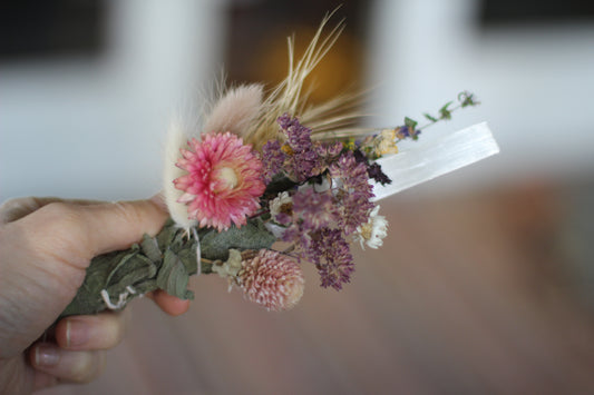 Dried Flowers, Herbs & Selenite Smudge Wand