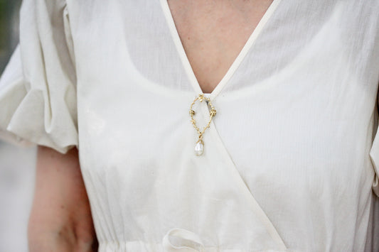 Swirly Feather Pearl Brooch