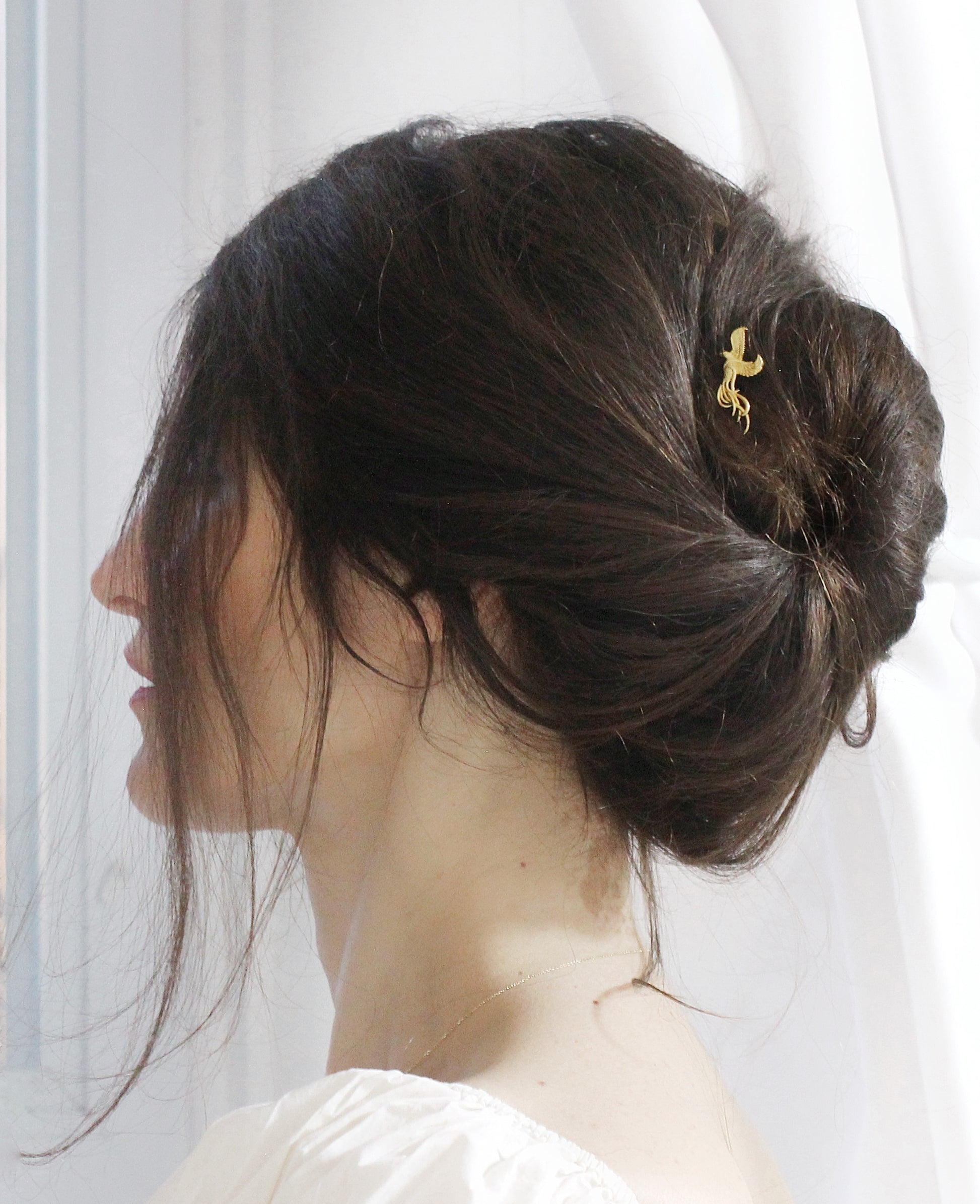 This radiant hair pin is inspired by the legendary phoenix, a symbol of renewal, strength, and transformation. The Baby Phoenix pin features our two-prong ergonomic wave design, created to glide effortlessly through all hair types while offering a secure, gentle hold.