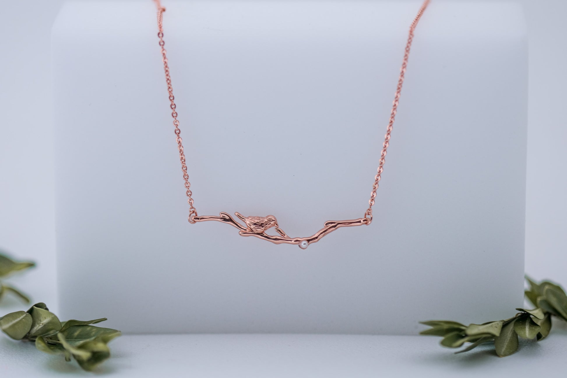 This beautiful chain necklace is decorated in the center   with a delicate and rustic looking branch, along with the sweetest little bird and a tiny seed pearl.