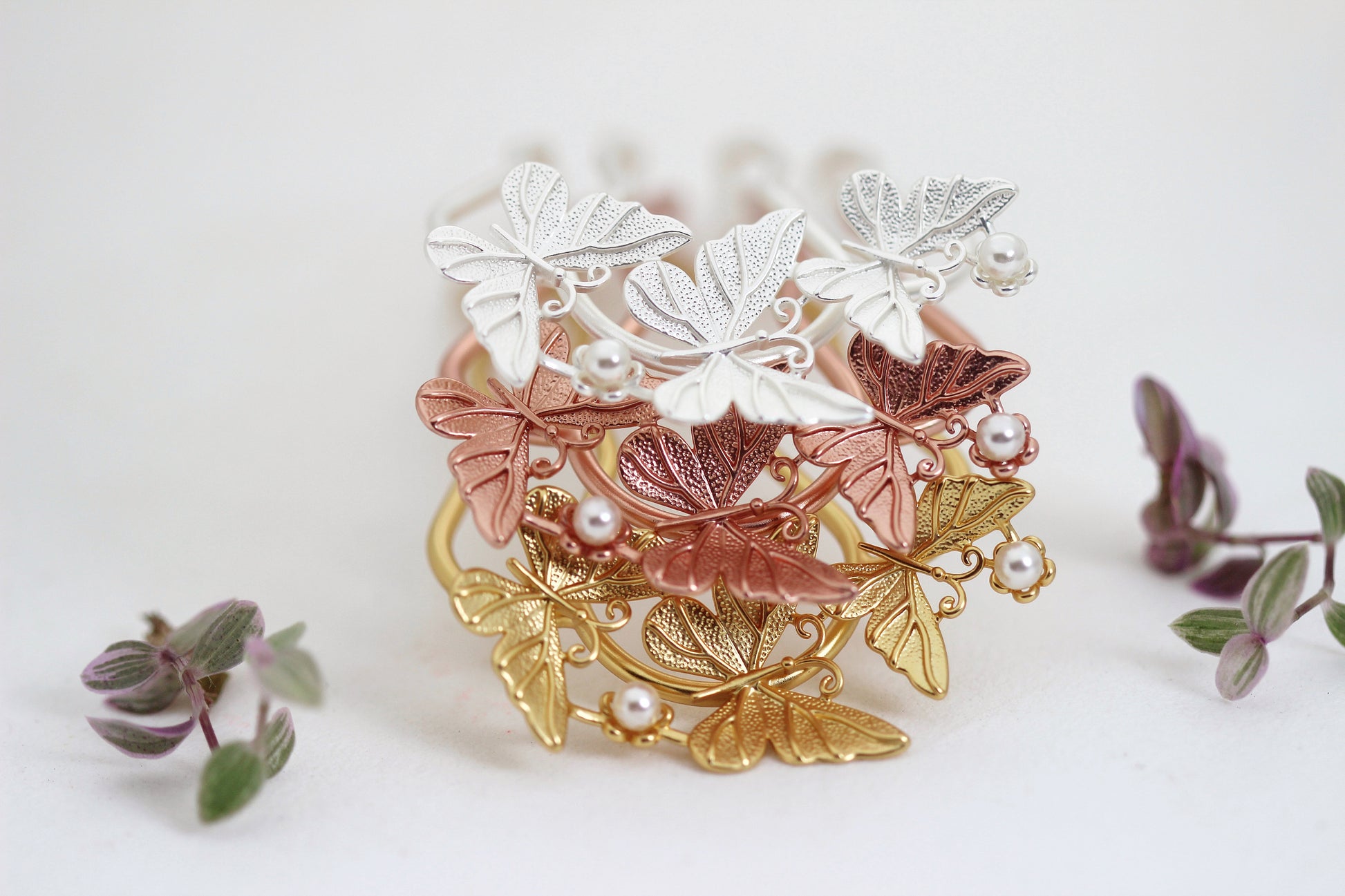 This graceful hair pin is inspired by the delicate beauty and symbolism of transformation that butterflies embody. Three dainty butterflies dance together across this piece, accented with luminous pearls, a gentle reminder of growth, grace, and renewal.