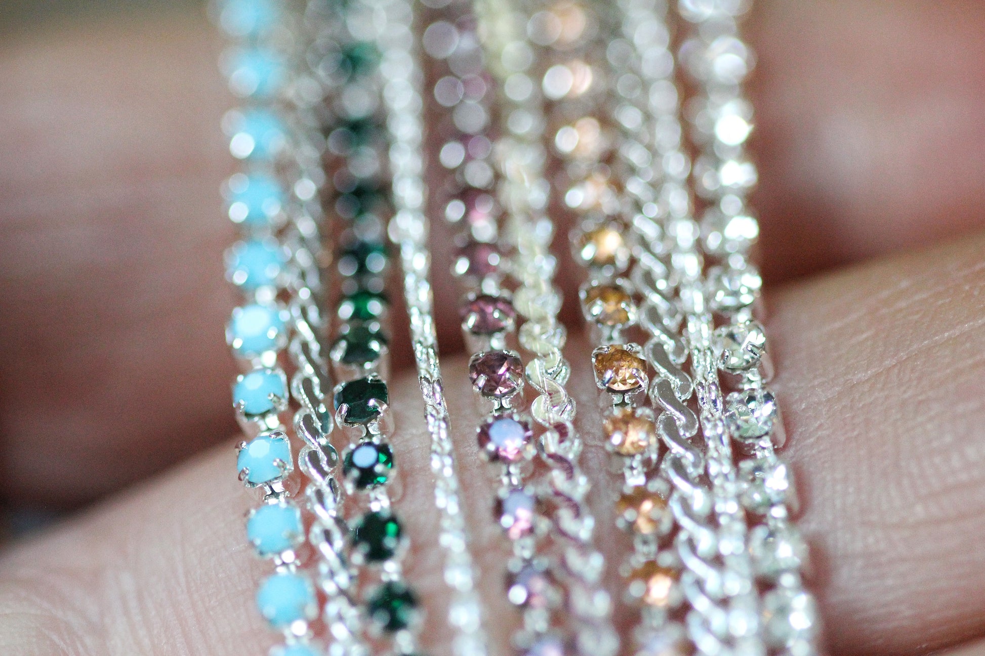 It features one chain strands and one crystal strand, which attach to two ties for securing. The hair chain is a multifunctional marvel, also shapeshifting into a necklace, choker, bracelet, anklet, or belt!