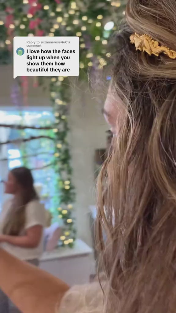 This fierce hair pin is decorated with a detailed swirly dragon, soldered onto a base with our four prong ergonomic wave design that has the power to secure and pin all hair types. The dragon symbolizes power, wisdom, strength, and hidden knowledge.