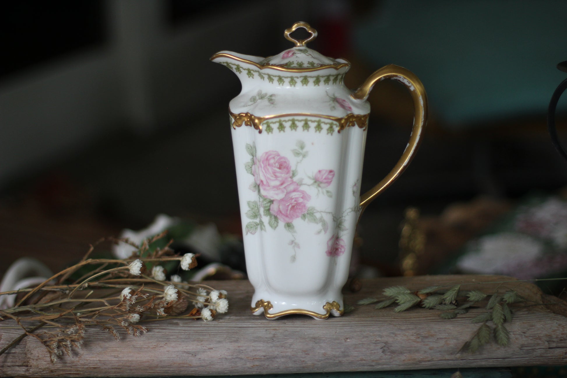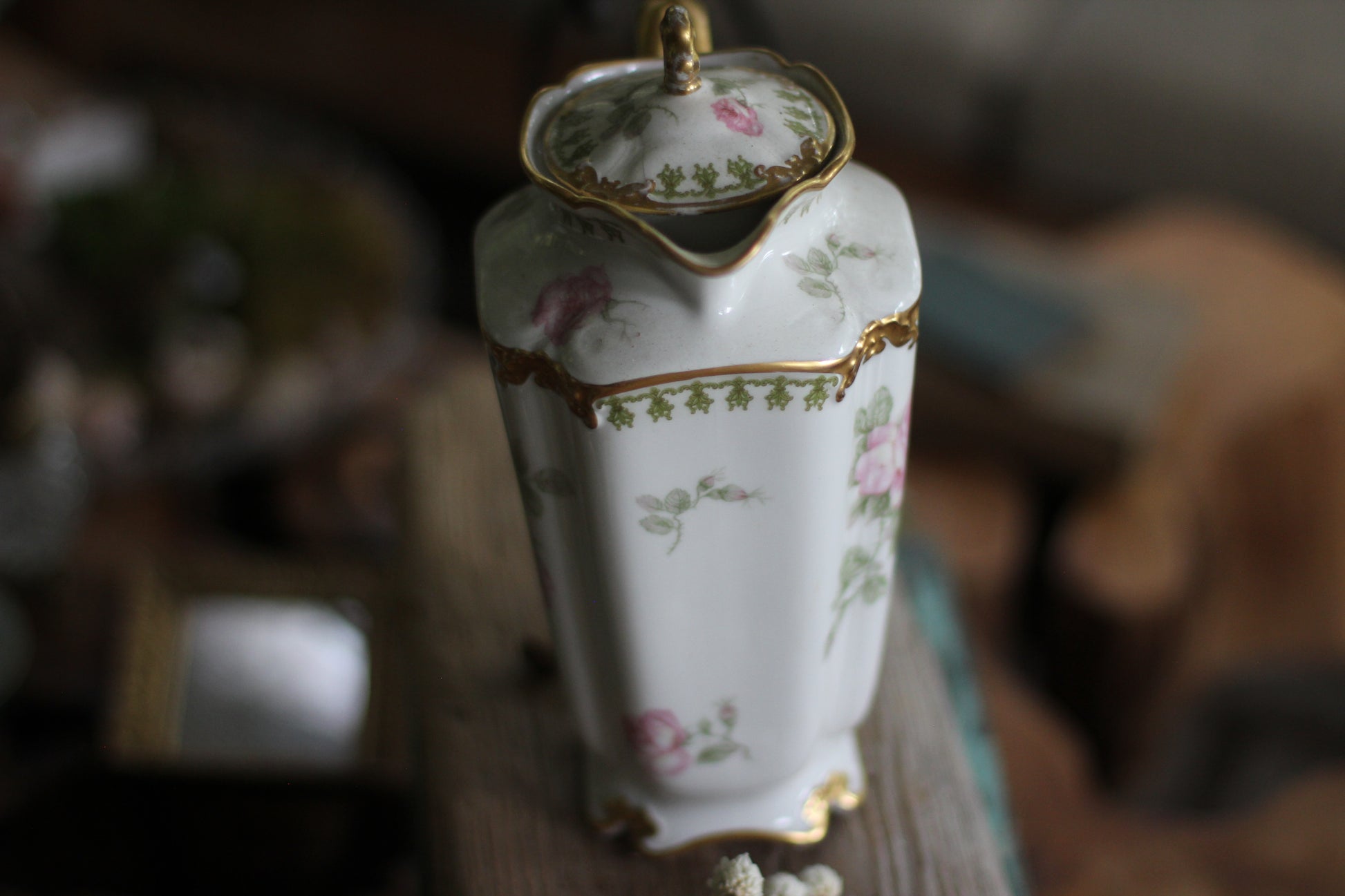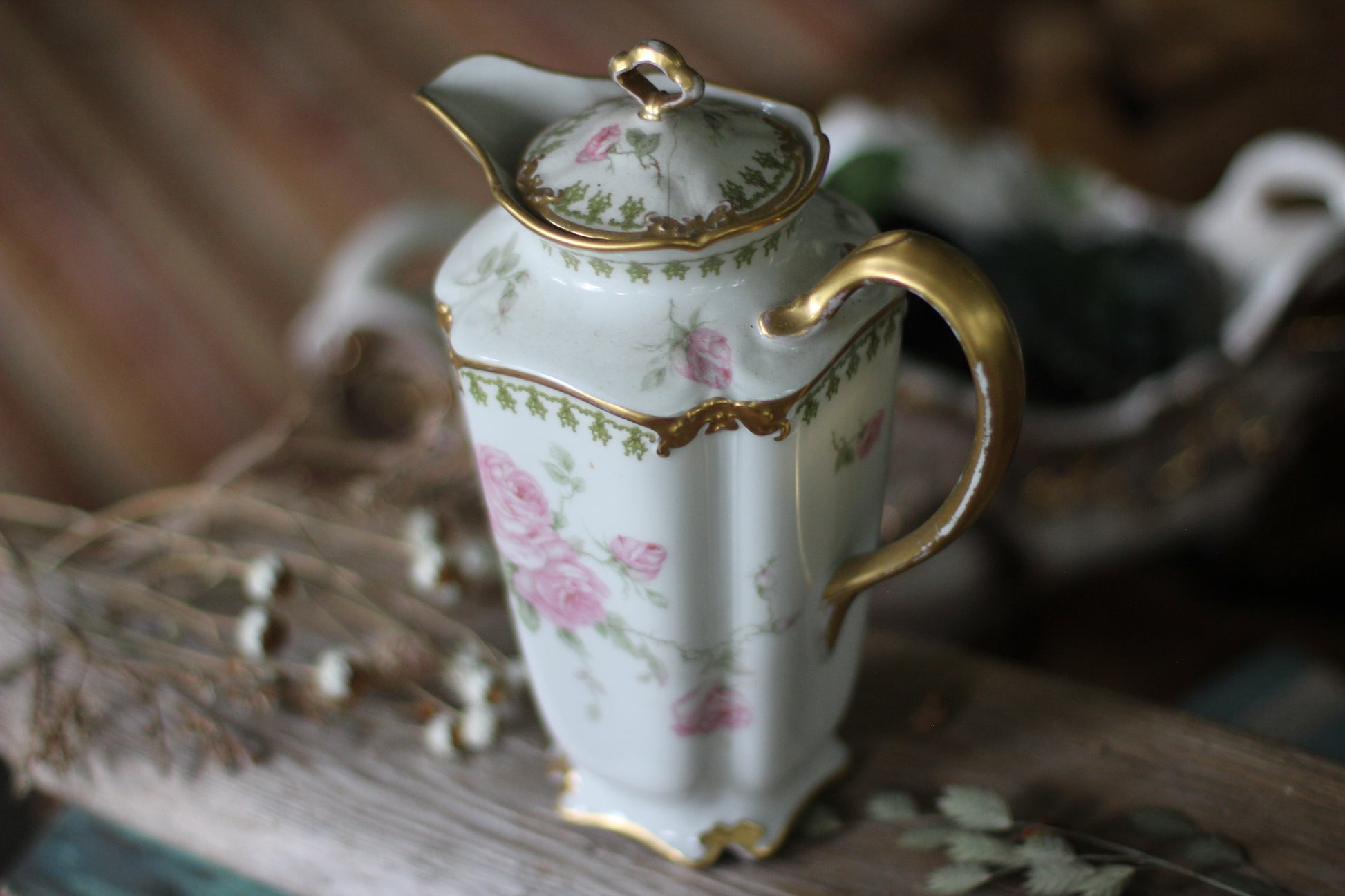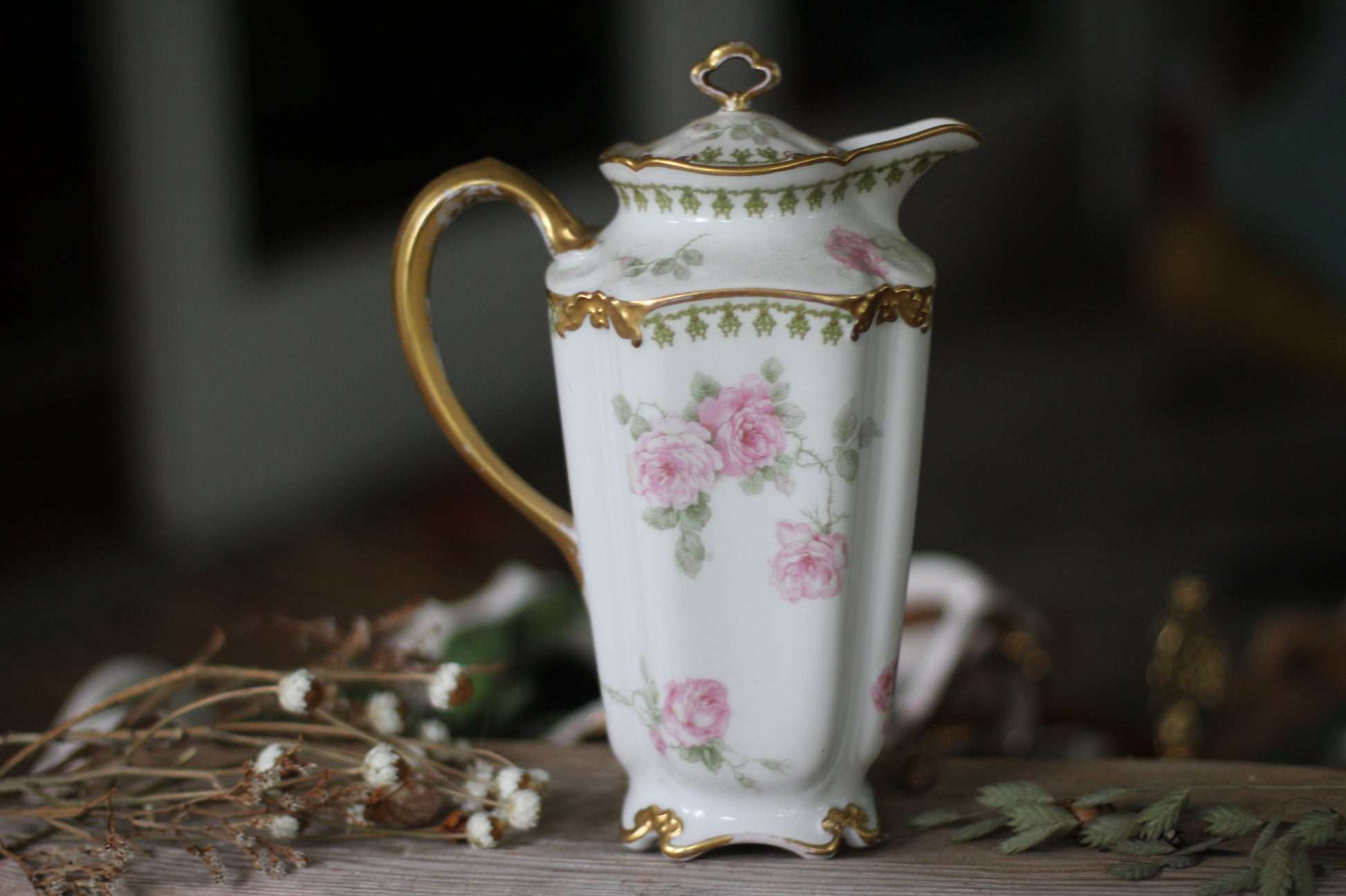 Vintage Limoges Floral Leaves Porcelain Tea Pot