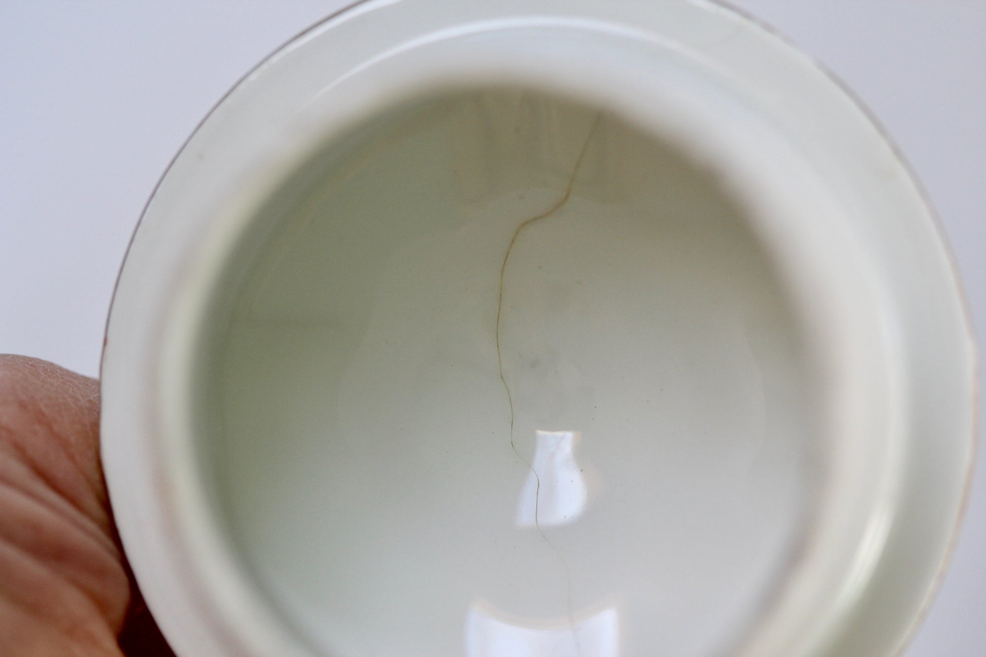 The condition seems great although there is a small crack on the inside part. Pls note that due to old age of this item small unnoticed defects might be present.